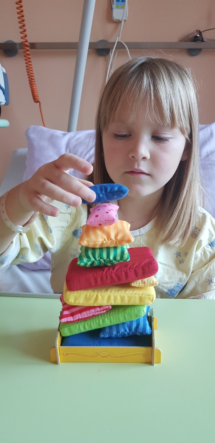Potem sem ji prek risanke Mia in jaz razložila, da so v njenem telesu molekule, ki jih napadajo "mulekule" iz risanke – slabe celice –, zato je kri slaba. S kemoterapijo ji bomo pomagali in premagali "mulekule". Na ta način je tudi razumela. Vse smo ji povedali na način, ki ga razume, ničesar ji nismo prikrivali. Razložili smo ji, da je bolezen ozdravljiva, samo da je treba potrpeti, se boriti, da smo skupaj v tem in da bomo zmogli.