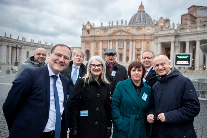 Papež Frančišek je predstavnike katoliških medijev, ki so sodelovali v projektu konzorcija relevantnih novic, povezanih s covidom, povabil na sprejem. Na avdienci s svetim očetom v Apostolski palači, natančneje Dvorani papeža Klemena, smo bili med približno sto gosti tudi predstavniki Družine in Aleteie.