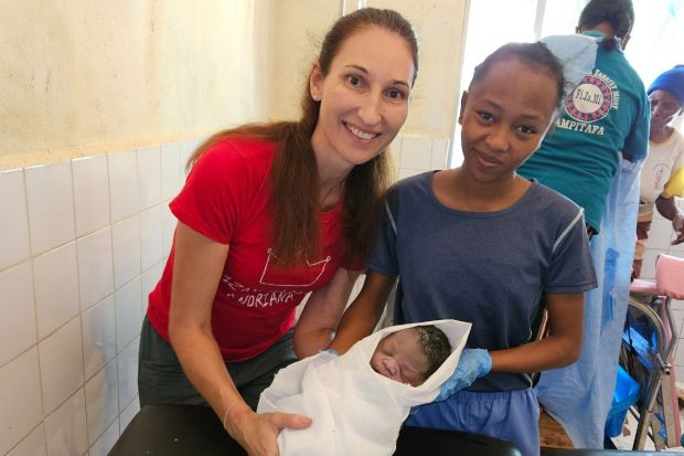 Eva in Gašper, ki sta sicer oba kirurga s področja obraza in se običajno osredotočata na ustno votlino, sta tu praktično počela vse. Od zobozdravstvenih storitev do zahtevnih operacij odprtega zloma lobanje sredi ničesar. Eva je, čeprav je "porodnišnica strah in trepet za zobozdravnika", v teh dveh mesecih pomagala pri porodu 25 otrok, od tega so se dvakrat rodili dvojčki.